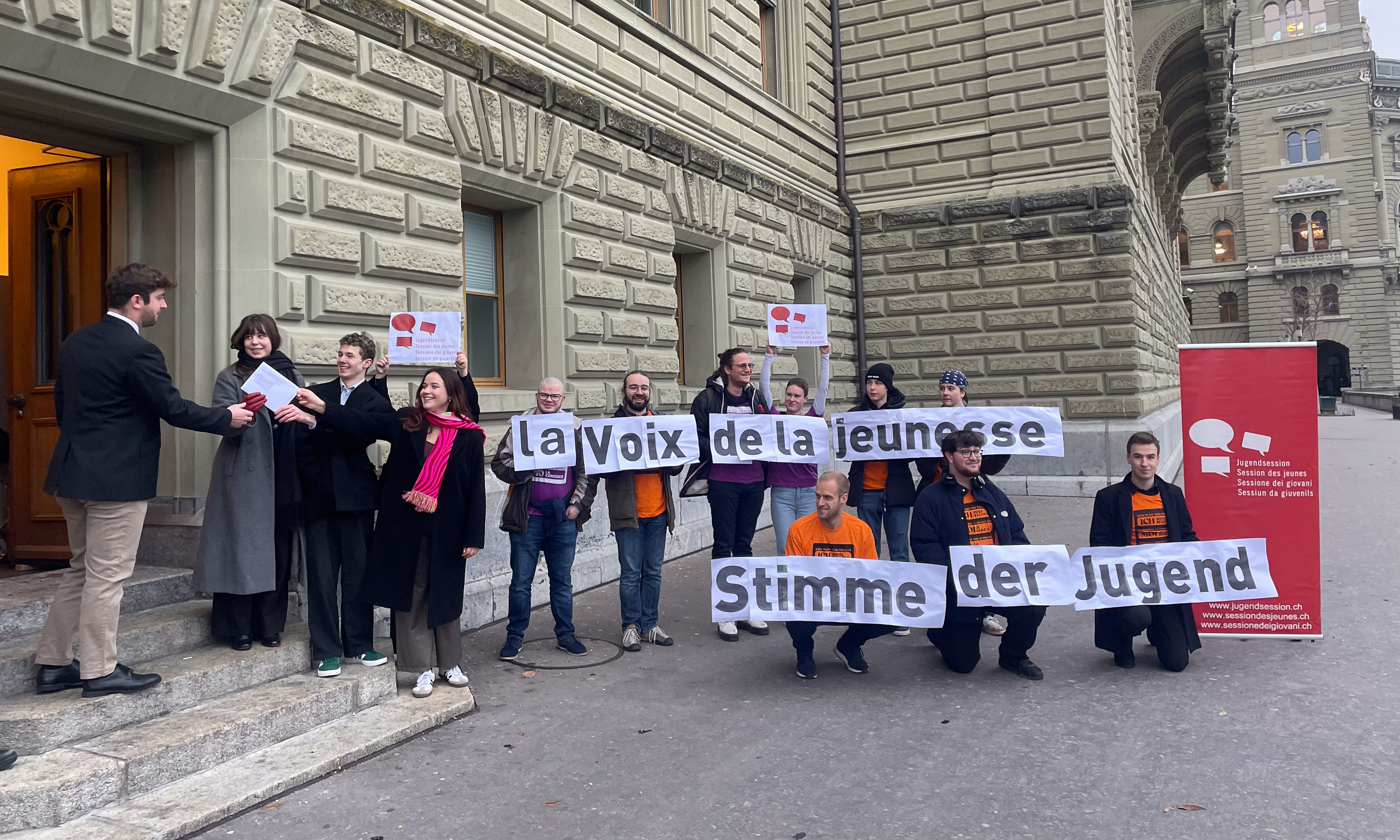 Genau ein Monat nach Ende der Jugendsession 2024 reichten die Teilnehmer*innen ihre Forderungen beim Bundesrat und der Bundesversammlung ein. Die Einreichung hat zum Ziel, dass die politischen Anliegen der Schweizer Jugend in der nationalen Politik gehört und bearbeitet werden.